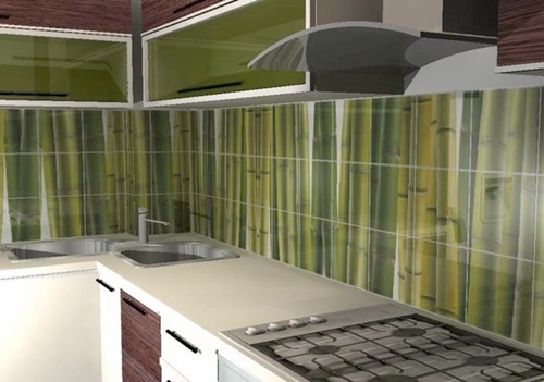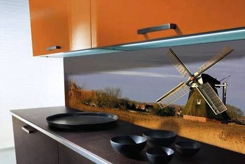 Если вы выбираете стеклянный фартук для своей кухни, значит, хорошо разбираетесь в последних модных тенденциях. Рабочая стеновая панель из стекла – это эстетическое удовольствие при минимальном времени монтажа. Толщина стекла кухонного фартука составляет около 6-8 мм, оно надежно крепится к стене специальными винтами. Главное преимущество стекла перед керамикой – стоимость и легкость установки. Кроме того, этот материал дает просто огромный простор для творчества. Современные технологии позволяют нанести на стекло практически любую картинку в хорошем качестве, вплоть до любимых фотографий домочадцев. Меньшую, по сравнению с керамикой, долговечность, можно устранить калением стекла или «бронированием» его специальной пленкой. Но этот процесс значительно повышает фартук из стекла в цене.