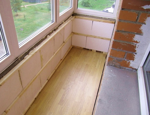 Особое место среди других материалов занимает экструдированный пенополистирол. Он обладает в полтора раза меньшей толщиной, чем вышеперечисленные теплоизоляторы. Начало работ по утеплениюДля того чтобы ответить на вопрос: «чем качественно и надежно утеплить пол балкона» - необходимо начать практические работы по утеплению пола террасы. Вначале следует закрыть все щели по ее периметру специальными сэндвич-панелями или металлическим каркасом. Затем полученную конструкцию залить пеной, и после высыхания – сверху нанести герметик, который применяется для наружных работ. Следующий этап – прокладка рулонного утеплительного материала и его закрепление с помощью клея. Благодаря таким действиям, вопрос: «чем утеплить пол балкона» – находит свой ответ на практике. Места стыковки размещенного на полу пенополистирола со стенами проклеиваются специальным скотчем. Благодаря наличию у него пароизоляционных свойств, теперь нет необходимости беспокоиться о возникновении плесени или грибка, а также конденсата. Завершение процесса работПо аналогии с действиями по теплоизоляции пола проводится утепление потолка, а также стен помещения. Сначала осуществляется прокладка и фиксация материала, выбранного владельцем квартиры для этих целей. После обработки углов – поверх размещенной теплоизоляции – прикрепляется фольгированный полиэтилен вспененного типа, имеющий толщину более 1 см. Его роль заключается в пароизоляции, а также в дополнительном сохранении тепла на террасе. После этого уже не возникнет проблема: как утеплить потолок балкона. Для окончательной отделки используют такие материалы как вагонка из дерева и пластика, влагостойкий гипсокартон и панели ПВХ. Они тоже обладают свойствами теплоизоляции. По этой причине, вопрос: как лучше всего утеплить потолок балкона – можно считать решенным. Что касается креплений, то они могут быть выполнены из дерева или из металла. На этом же этапе решается вопрос с расположением электропроводки, так как ее правильней установить под покрытием.